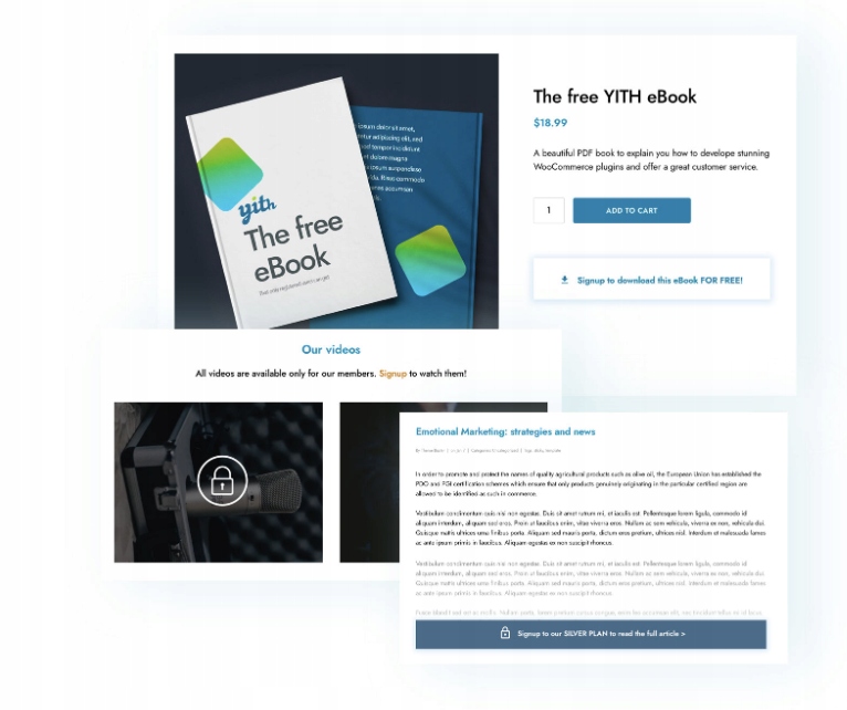 Zarządzanie kursami, usługami, cennymi planami członkostwa z prywatnym dostępem, wysyłanie wiadomości do klientów, planowanie publikacji ekskluzywnych treści dla klientów: wszystkie te działania można łatwo wykonać dzięki YITH WooCommerce Membership, wtyczce zaprojektowanej w celu usprawnienia zarządzania produktami o ograniczonym dostępie.