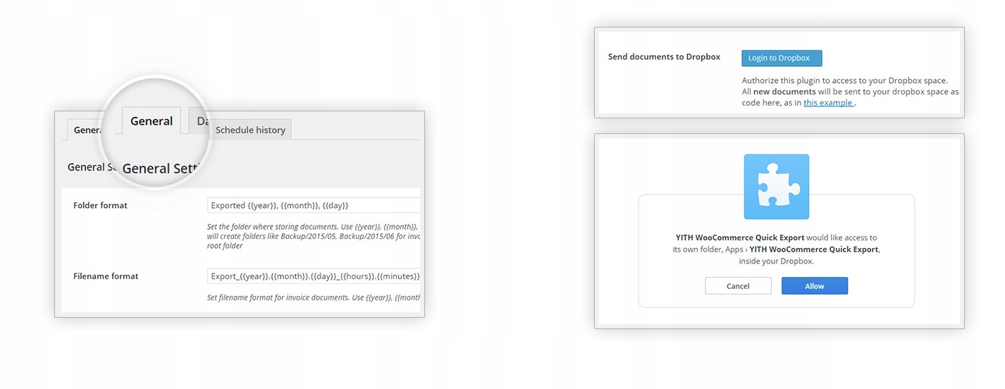 YITH WooCommerce Quick Export Premium to rozszerzenie WooCommerce opracowane przez YITHEMES. YITH WooCommerce Quick Export Premium umożliwia automatyczne tworzenie kopii zapasowych danych woocommerce w usłudze przechowywania danych Dropbox.